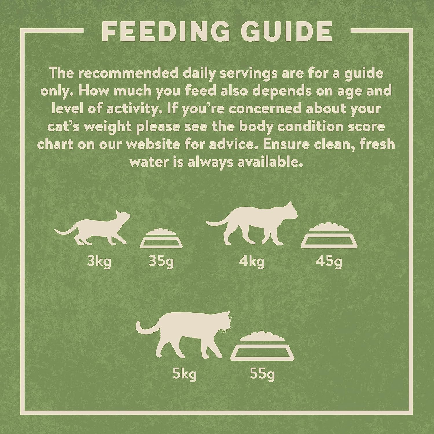 Feeding Guide: Serve dry or lightly moistened. Fresh water should always be available. Adjust feeding amounts to meet your cat's individual needs based on age, breed and activity level. For active cats add 10% more food. When changing your cat's food, introduce gradually over 7-10 days.