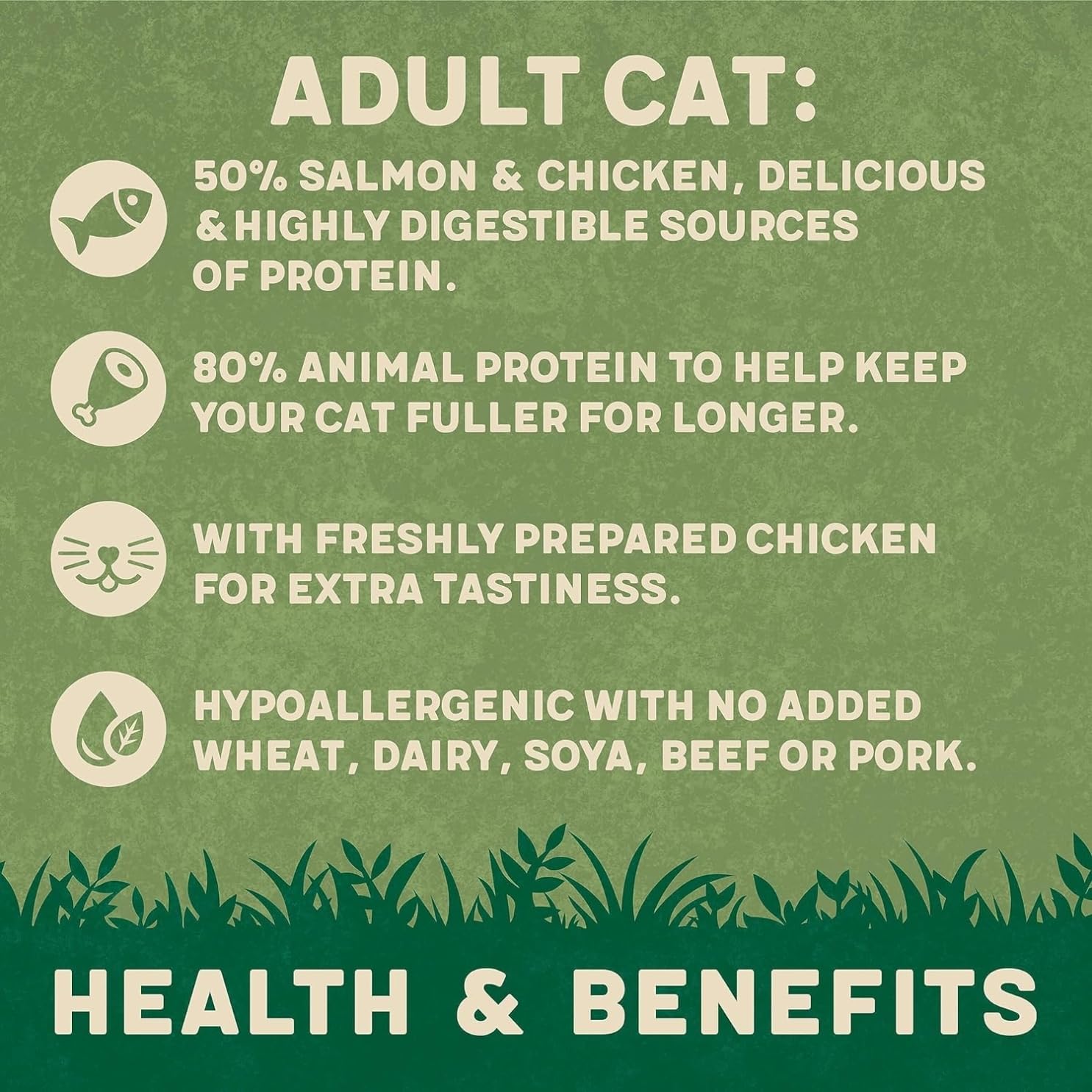 - 80% Animal Protein - Helps keep your cat fuller for longer