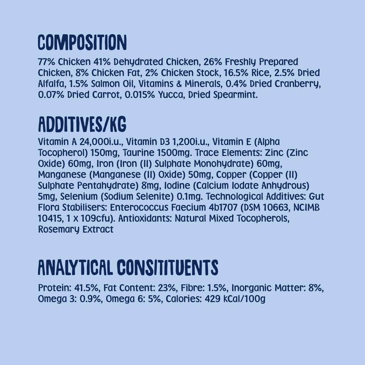 Give your kitten the perfect start in life with this specially formulated natural dry food. Packed with chicken and enriched with DHA to support brain development, this complete recipe helps your curious kitten grow into a clever, healthy cat. Designed for kittens from 8 weeks old and pregnant or nursing queens, this gut-friendly food provides everything growing cats need to thrive.